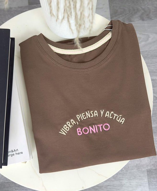 Camiseta Bordada Vibra Piensa y Actua Bonito